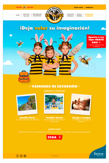 Y partiendo del 'Abejonejo' como identificador de AfterBite, nació el Club Pequeños Abejonejos. Un club con un sistema de recompensas por participación canjeables en punto de venta y apartados para hacer actividades educativas y medioambientales en familia.