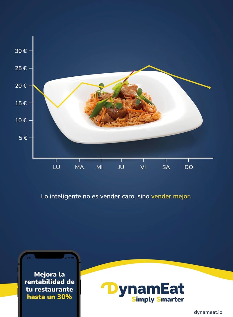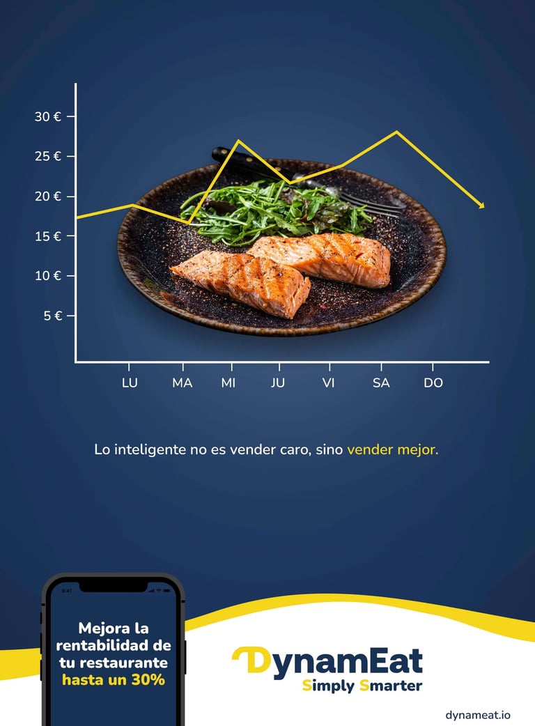 DynamEat es una app que combina tecnología Smart Menu y Dynamic Pricing para que negocios de hostelería mejoren su rentabilidad y margen de beneficios. Mediante IA considera variables como stock, orden de los platos, previsiones de venta o costes, y elabora soluciones para ajustar los precios a la demanda prevista de cada día de la semana.