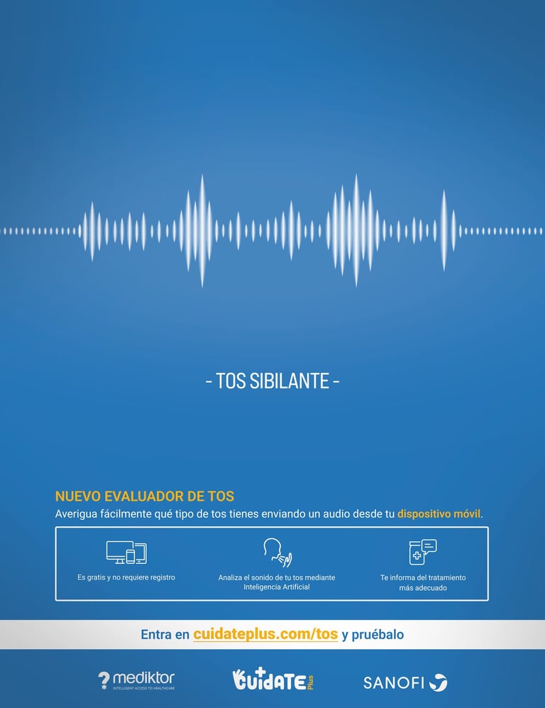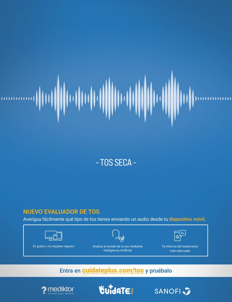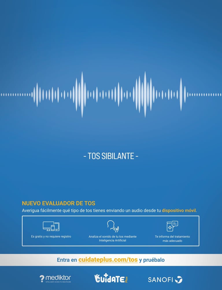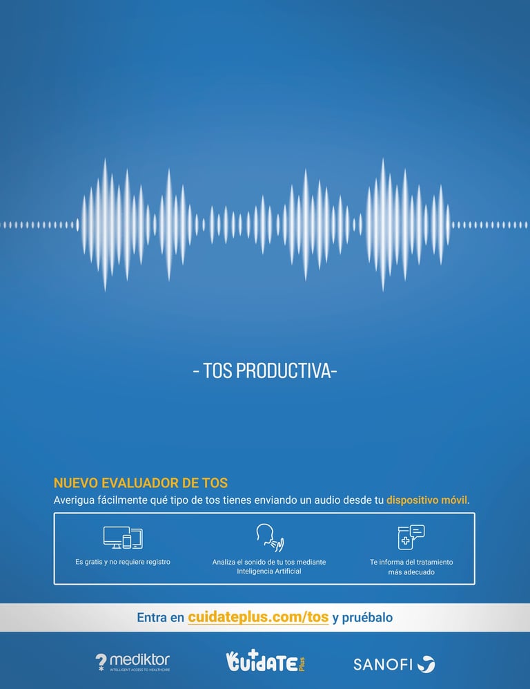 Cuidate Plus, como plataforma de referencia en prevención y educación en salud, quiere dar un valor añadido a sus lectores ofreciéndoles un evaluador de tos online en colaboración con Mediktor y Sanofi.